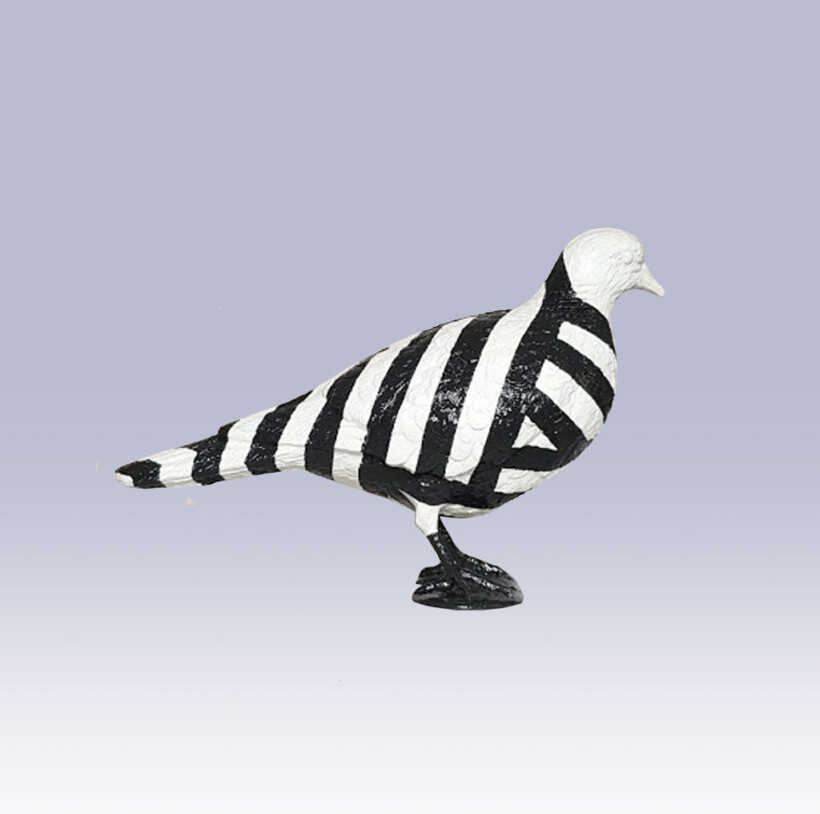 Dazzle Pigeon based on the ‘Belonging’ pigeon installation originally commissioned by Walker Gallery for the 2012 Liverpool Biennial, the UK Biennial of Contemporary Art. Now available as a limited edition.
