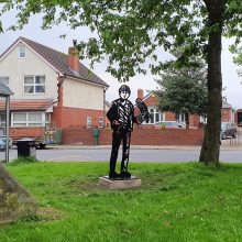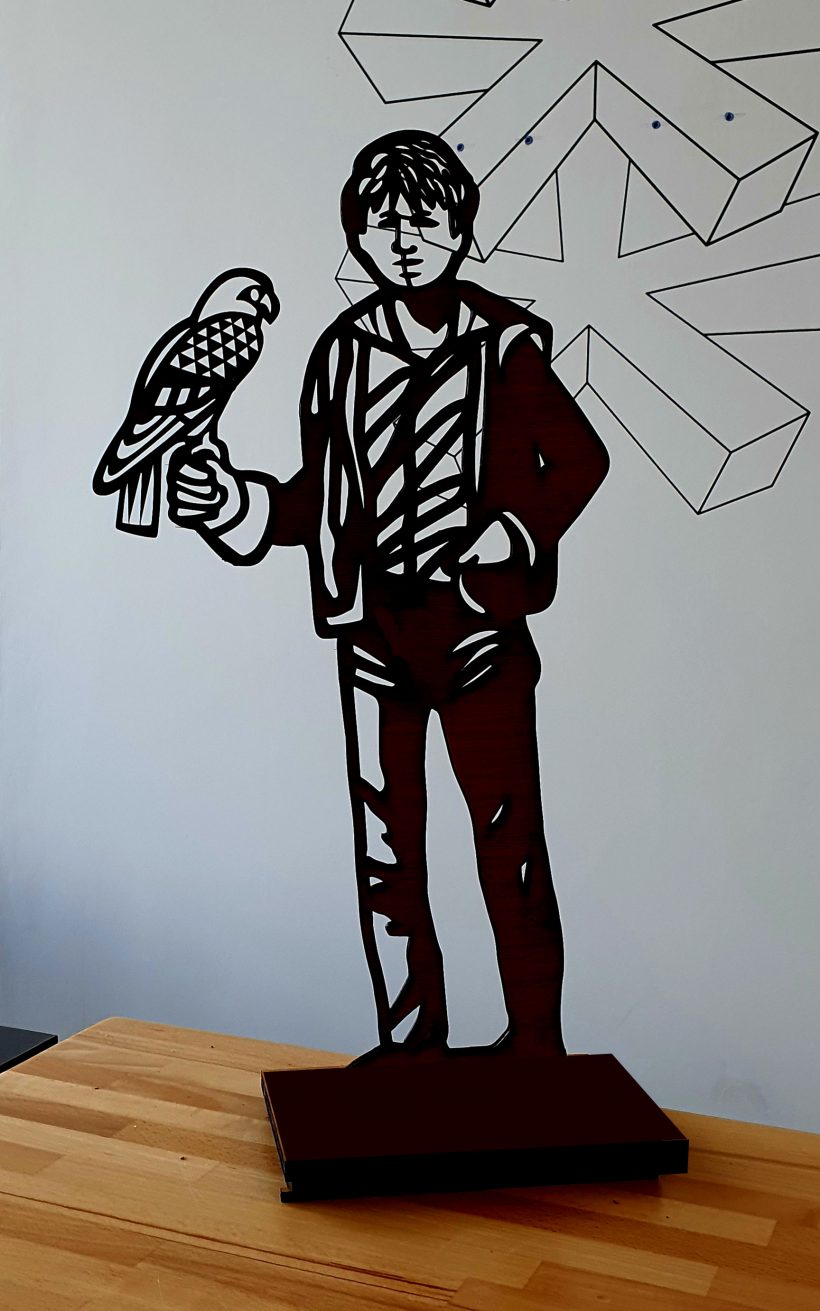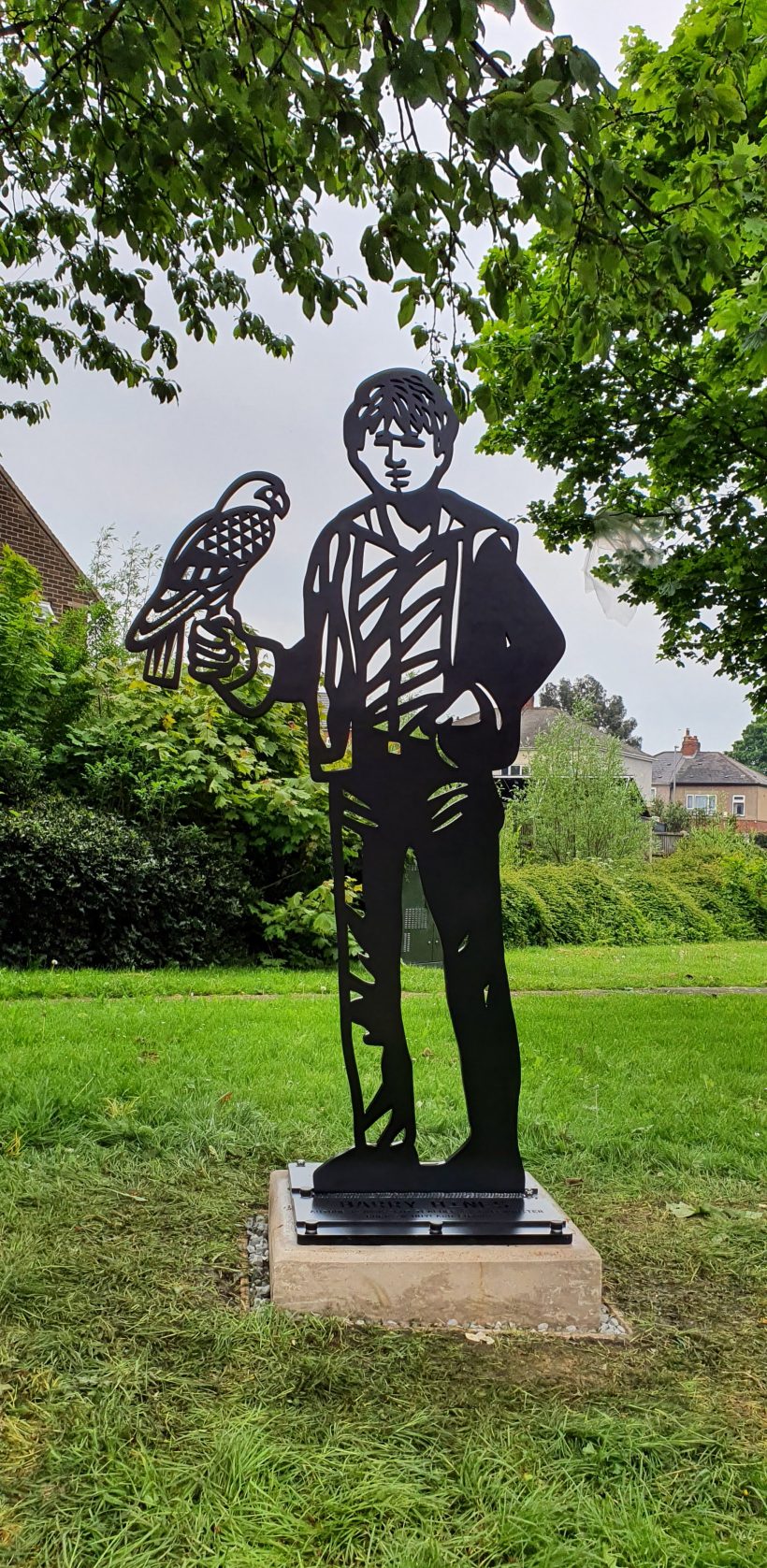 The actual sculpture is installed in a small park in Hoyland Common, Barnsley. Across the road from where Barry Hines used to live, you can see a blue plaque on the house on Hoyland Road.