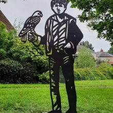 Replica of larger Billy & Kes sculpture installed in Hoyland Common.