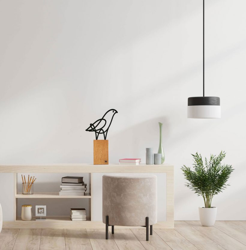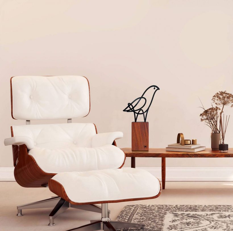 The contrast between the simplicity of the bird and the warmth of the wood gives the sculpture a quiet, contemporary presence. It’s designed to perch gently in the home — a small companion that carries the same sense of hope, freedom, and peace that inspires my larger public works.