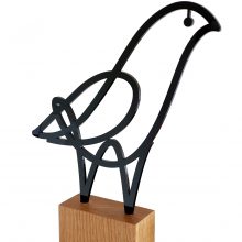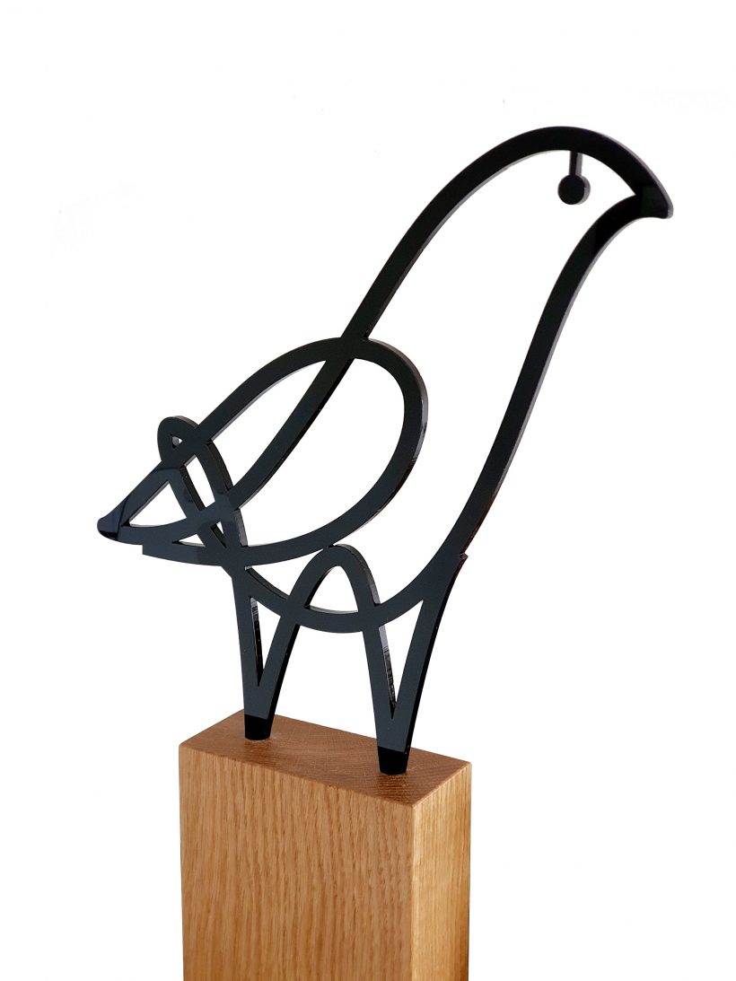 Continuous Line Bird began as one of those drawings: a single, unbroken line made without lifting the pen from the paper. That single gesture is now transformed into a three-dimensional form — a laser-cut acrylic bird installed on a solid base of oak, cedar, or walnut.