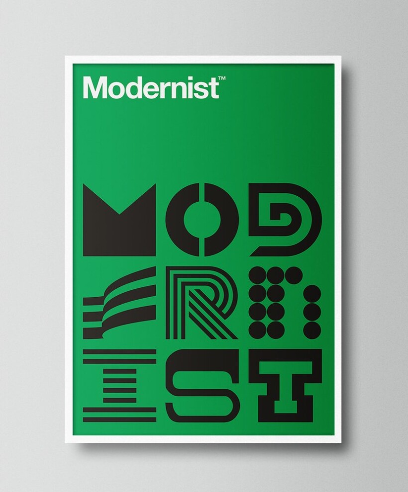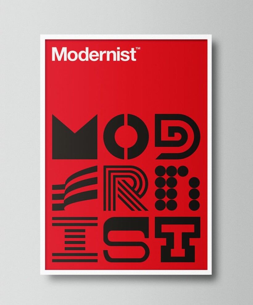 This ‘Modernist’ print is a celebration of modernist graphic design and architectural forms from the 20th Century. It is part of an ongoing series of prints exploring modernism.