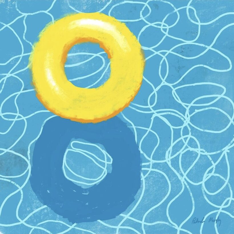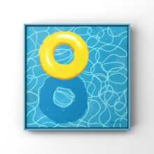 There is something lovely about a brightly coloured inflatable floating on a pool with the suns glimmering light reflected on the water. Last year I started to paint a series of these. They looked great when placed into blue frames, making them look like mini pools themselves.