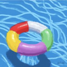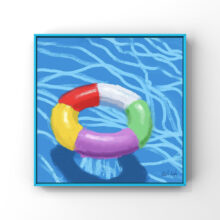 There is something lovely about a brightly coloured inflatable floating on a pool with the suns glimmering light reflected on the water. Last year I started to paint a series of these. They looked great when placed into blue frames, making them look like mini pools themselves.