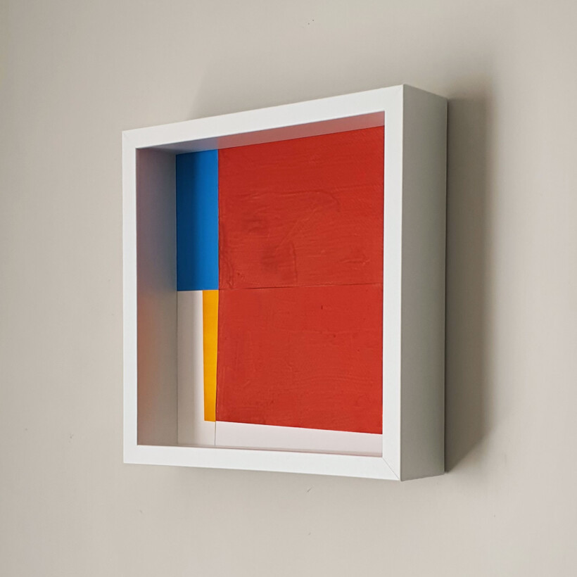 A series of abstract works that incorporate four forms that divide the space. Each work is hand painted and using acrylic paint on 300gsm watercolour paper. The paper is cut and constructed in the space.