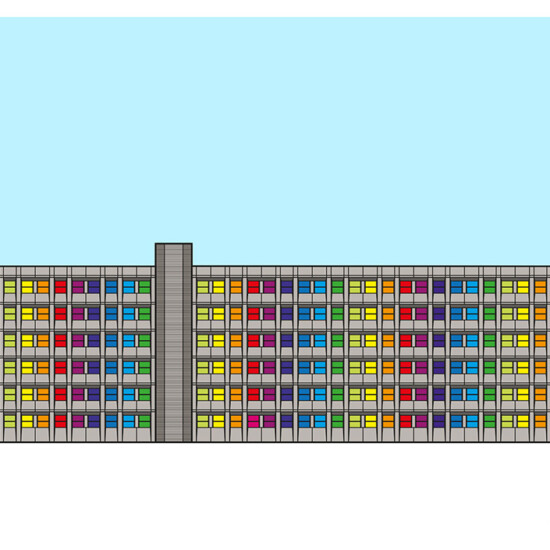 I work a lot with the colour in my work. I wanted to create Rainbow print that utilises the geometric shapes and colours in a playful, cheerful work.