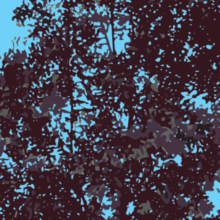 I started to focus on just three trees that I liked the most in terms of composition, I decided to create a minimal pared back aesthetic, concentrating purely on the tree structures, branches and leaves and nothing else, just a pale blue sky behind. I found the working process meditive, continually checking the composition of the leaves against the overall tree structure, and that the colours represented the trees when they were in their deep red stage when they look most spectacular. I like the quality of them being frozen in time. I have attached some images that show the drawing process, illustrating the many lines and shapes and shown as pixel dots or outlines.
