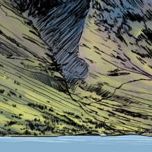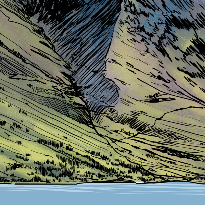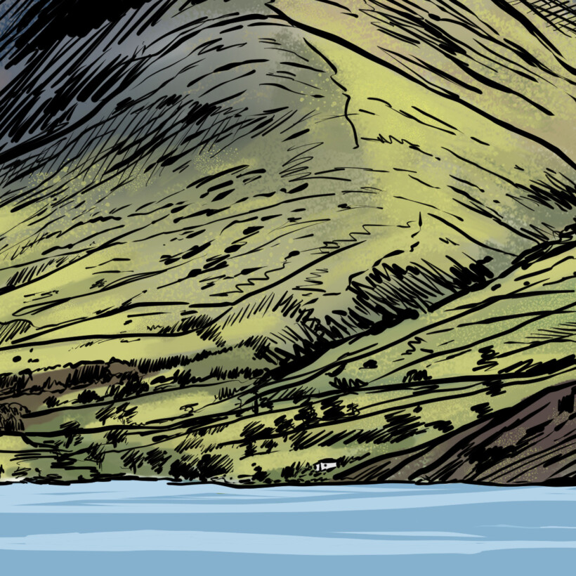 Working on this almost felt like physically walking and exploring the rugged landscape shown. I even included a small white cottage into the scene, can you see where it is? In the detailed images it shows the cottage at the water’s edge on the right hand side of the scene and helps highlight the majestic scale of the landscape surrounding it.